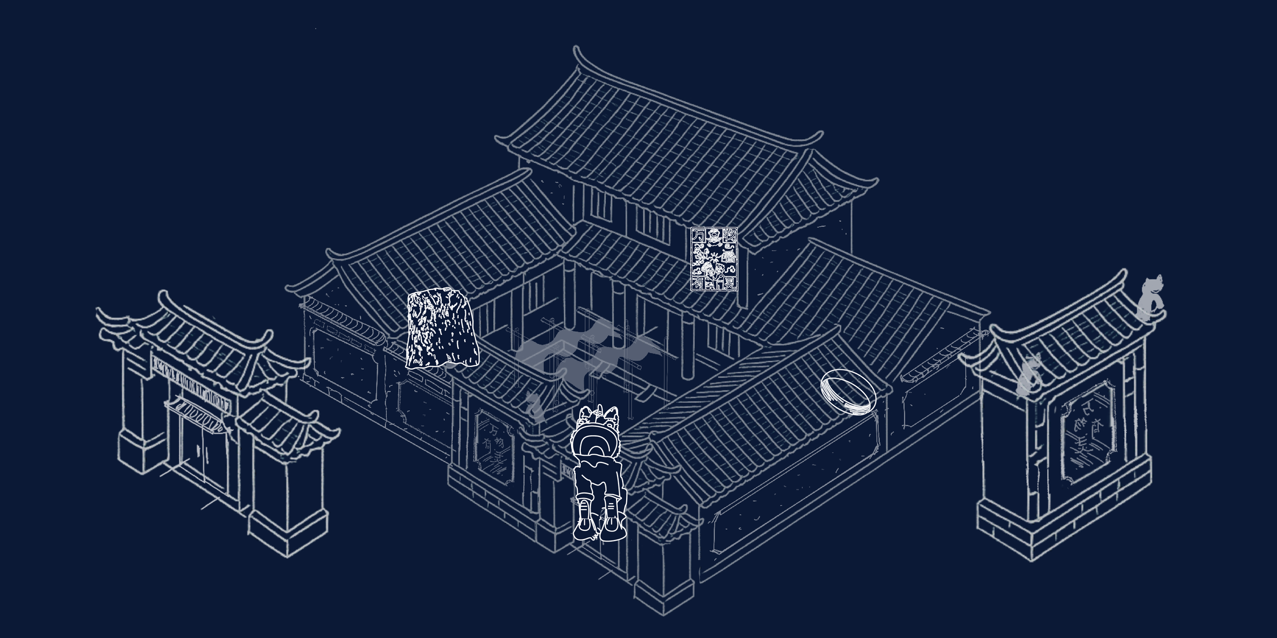 The Bai people of Dali, located in the Yunnan province of China, honour nature as sacred. This exhibition draws on the Bai people's traditional 三坊一照壁 (Three Memorial Archways and One Screen Wall) architecture, reflecting their mountain lifestyle and spiritual practices.